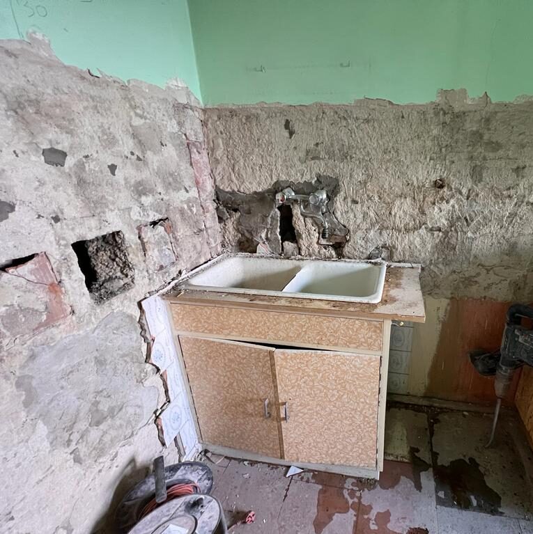 Okazało się że podłogi, ściany, i instalacje są w takim stanie że faza „przygotowawcza” nieco się przedłuży. Ale dzięki solidnej Ekipie prace przebiegają bardzo sprawnie. To ważne bo za zakrętem czekają kafelki („flizy” jak mówią gdzieniegdzie), krany, drzwi, stoły itd. Wszystko jest już narysowane, wymyślone, przygotowane i przeliczone. Zdarzają się oczywiście zgrzyty, ale przebudowa ma charakter amorficzny; trzeba się dostosowywać, naginać, przeliczać… Na tym też polega przyjemność. Ważne żeby mieć w glowie dużą kartotekę „opcji” i „planów B”.