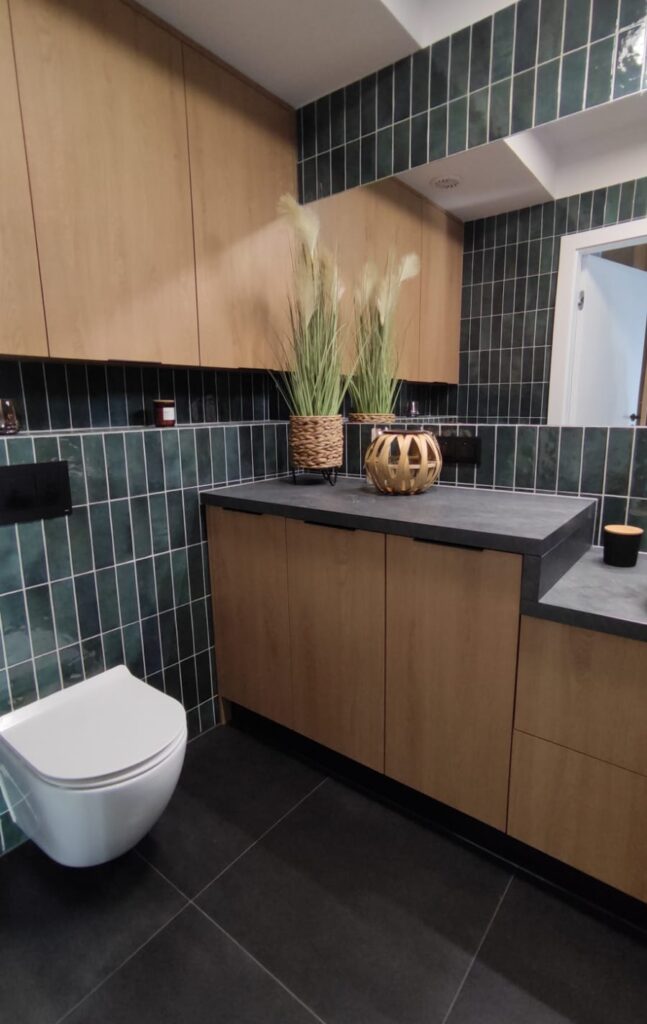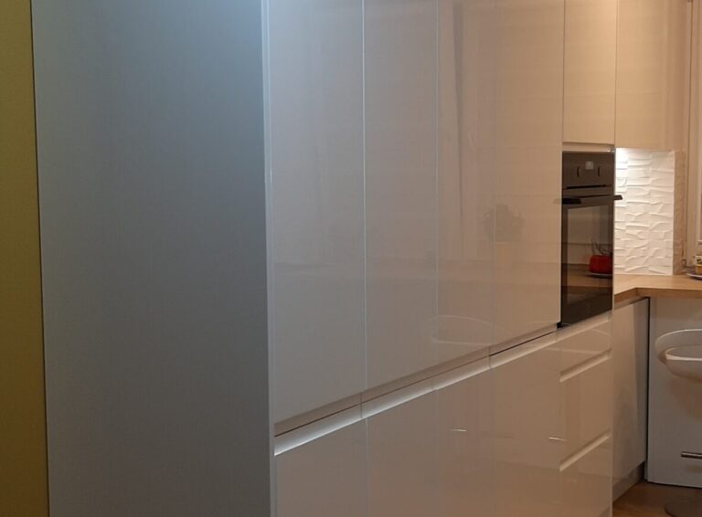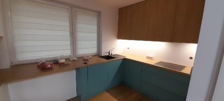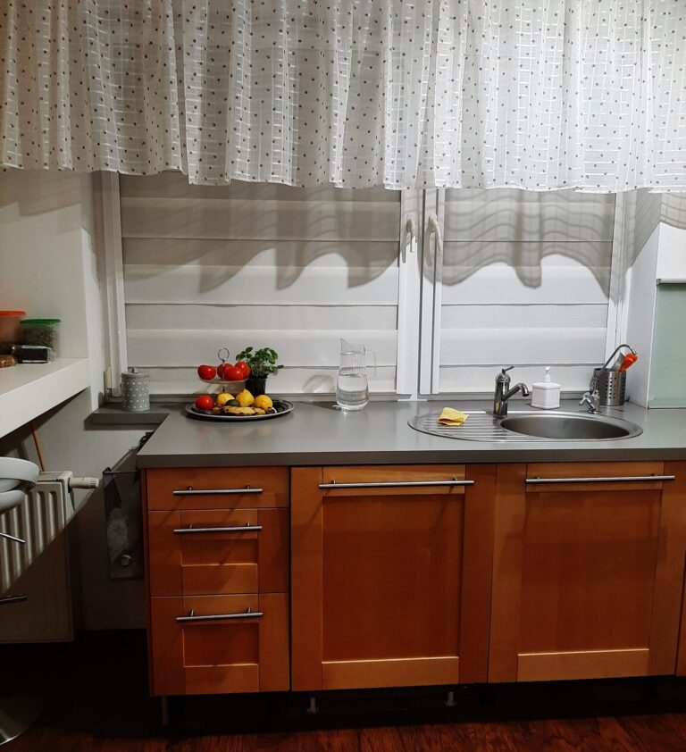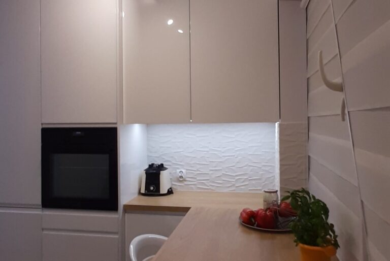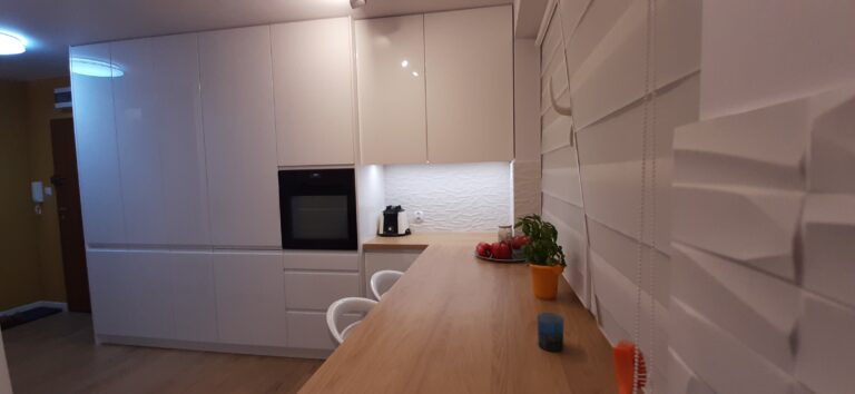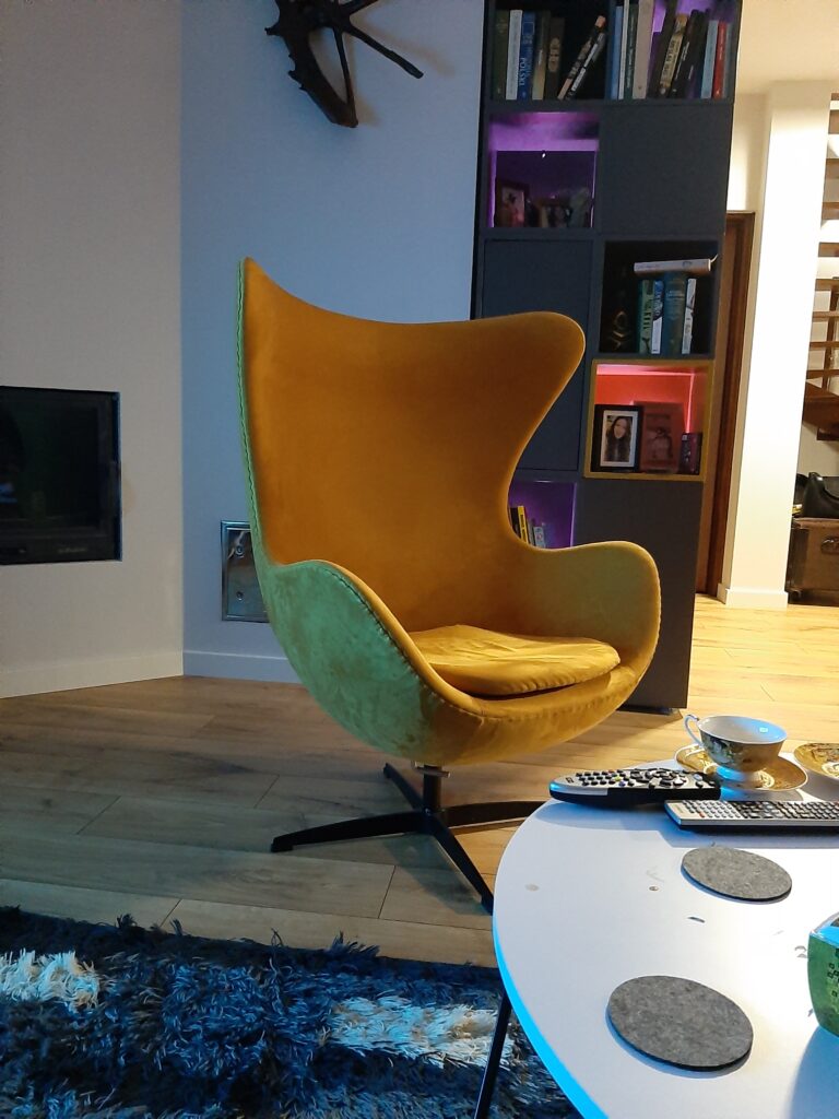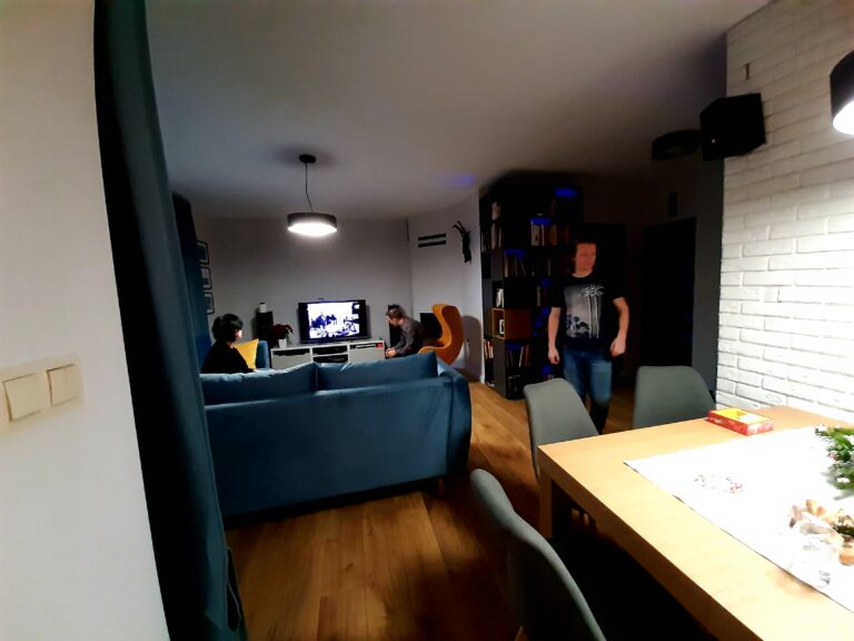 Po 10 latach okazało się że trzeba coś zmienić. Trochę się zniszczyło, trochę znudziło a trzeba było wyjść z tzw strefy komfortu. Trochę pogadaliśmy, trochę porysowaliśmy, policzyliśmy budżet i po miesiącu zrobiło się całkiem przyjemnie. (z prawej zdjęcie „przed” a poniżej odbiór inwestycji)